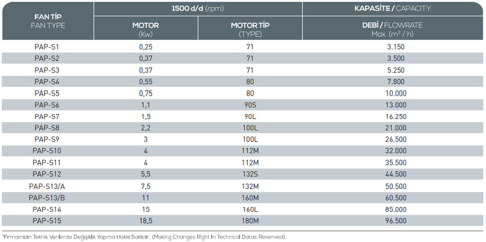 Kullanım Alanları; Duman tahliyesinde, dökümhanelerde, çimento fabrikalarında, kağıt fabrikalarında, doğrama işlerindeki tozlu ve nemli havanın emilmesi, mahal havalandırılmasında, ısıtıcılarda ve soğutucularda
