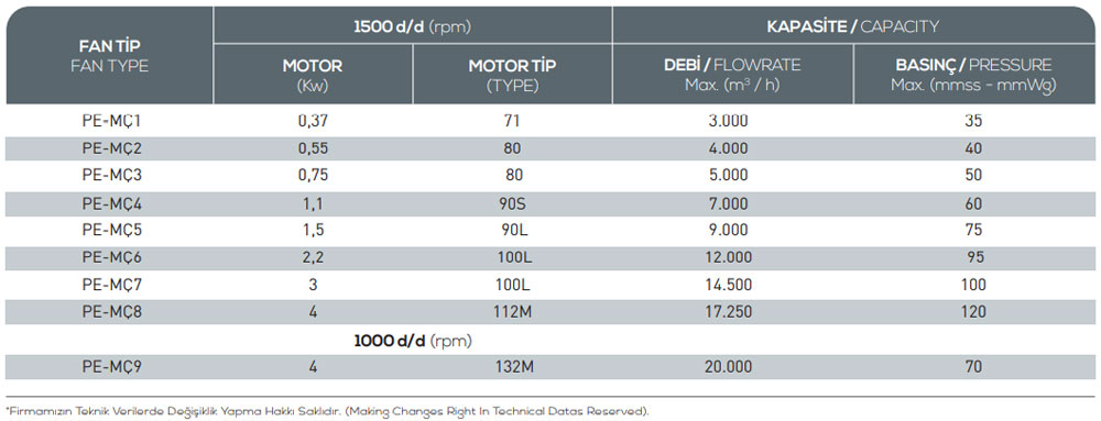 Kullanım Alanları; Ortamı havalandırmak için hava değişiminin zorunlu olduğu yerler ve kirli havanın, zararlı gazların ve buharın ortamdan atılması gereken yerler, evsel ortamlar, alışveriş merkezleri, yüzme havuzları, mutfaklar, garajlar, çiftlikler, ahırlar, dökümhaneler, atölyeler, düşük basınçta büyük hava hacimlerinin emilmesi gereken kimya, mekanik ve metalurji endüstrileri.
