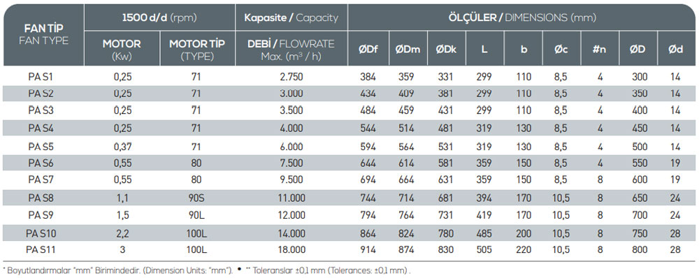 Aksiyel akışlı duvar ve pencere tipi fanlardır. Yüksek hacimli havanın düşük basınçlarda naklinde kullanılan fanlardır.